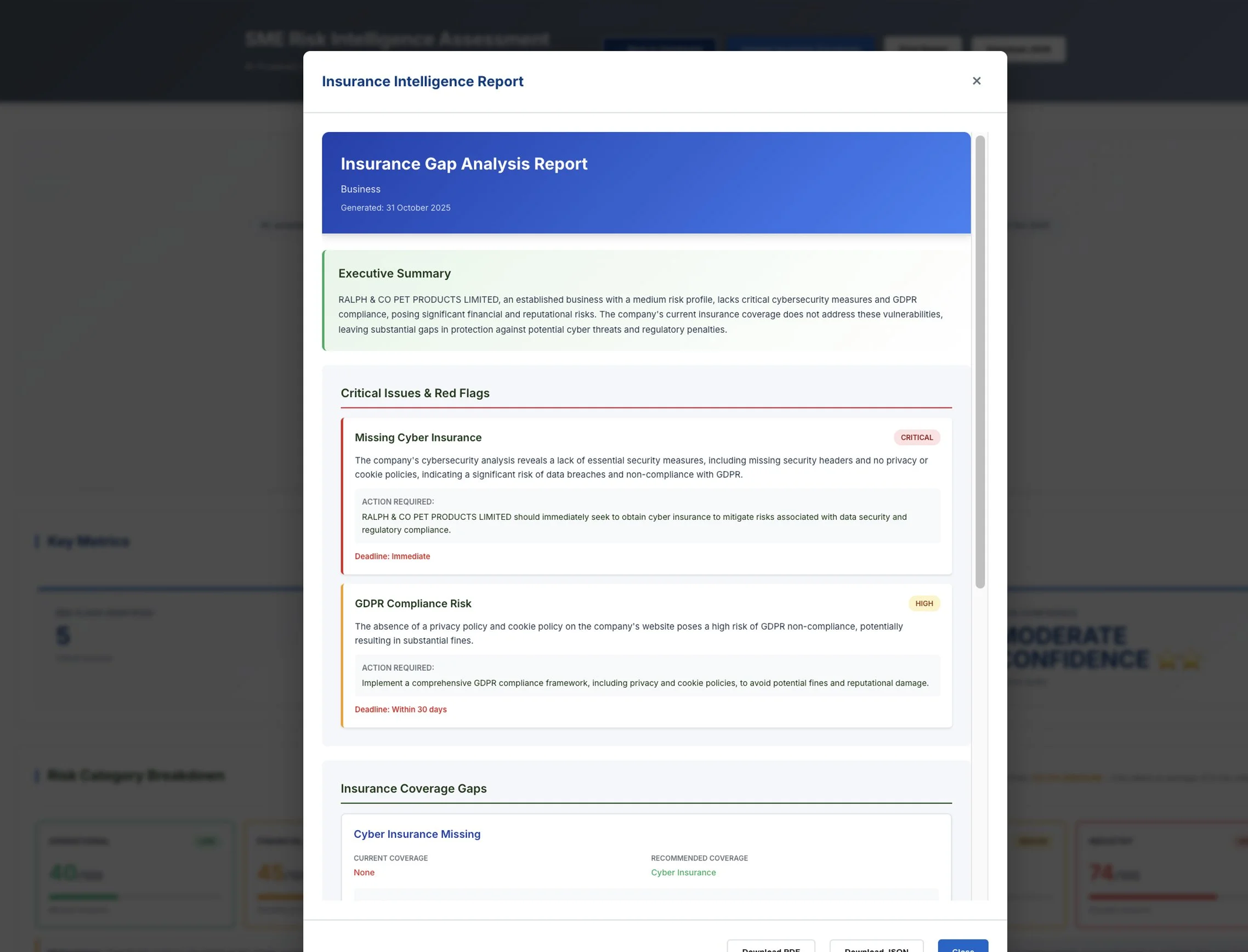 Joro compares existing insurance data to our live risk profile to identify personalised gaps and upsell opportunities — all in under 2 minutes.